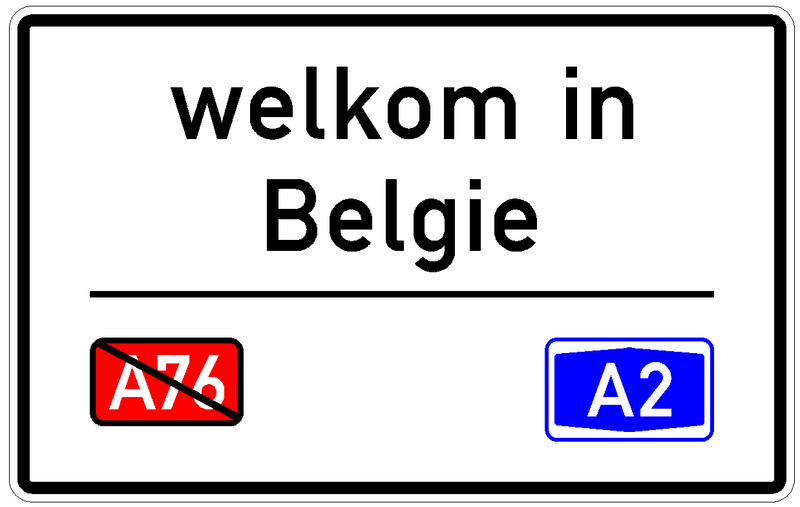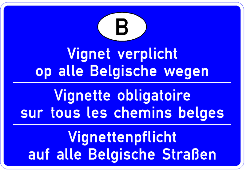 In het Duits worden bijvoegelijke naamwoorden niet met een hoofdletter geschreven, 't is dus "belgische Autobahnen" en niet "Belgische Autobahnen". Bovendien moeten deze borden al in Nederland, Duitsland, Luxemburg of Frankrijk staan. Zo gebeurd dat ook in Duitsland aan de grenzen met Zwitserland en Oostenrijk (en ondertussen zal er op de A6 bij de AS Waidhaus ook wel een bord staan dat je om rechtdoor te rijden een vignet nodig hebt. Zeker als er geen grenscontroles meer zijn tussen Duitsland en Tsjechië.)