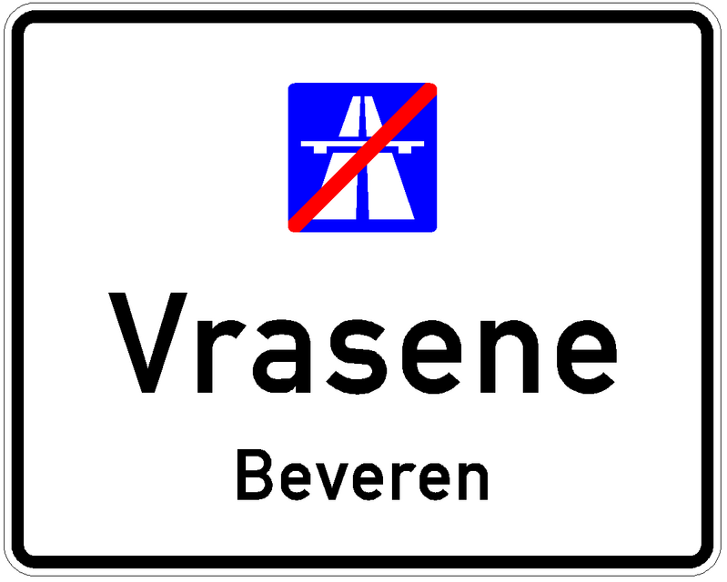 Binnenkomst bebouwde kom na snelwegafrit (vb. A11 afrit 10 Vrasene):